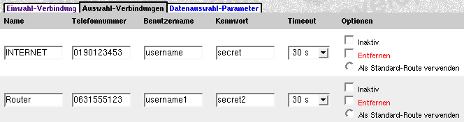 7. Tragen Sie dann im Dialog ISDN-Datenverbindungen die folgenden ISDN-Verbindungen ein: